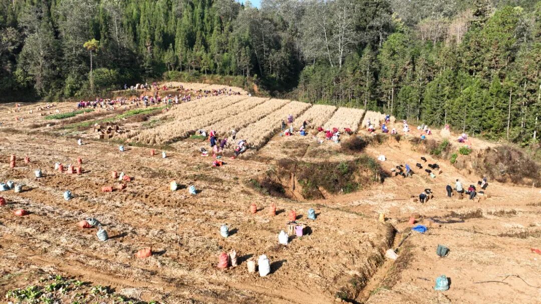 仲冬的师宗县,五龙乡曲祖村的田间地头堆满了刚采收的小黄姜,空气中弥漫着独特的辛香。
