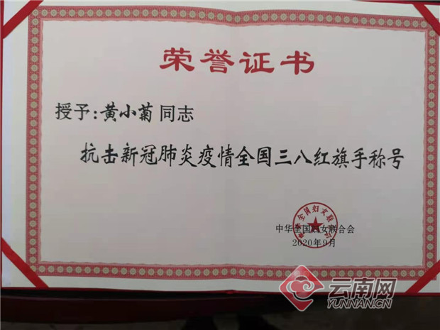 黄小菊受表彰 供图