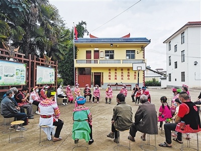 龙华街道清河社区扯寨村民小组组织网格内苗族群众学党史。