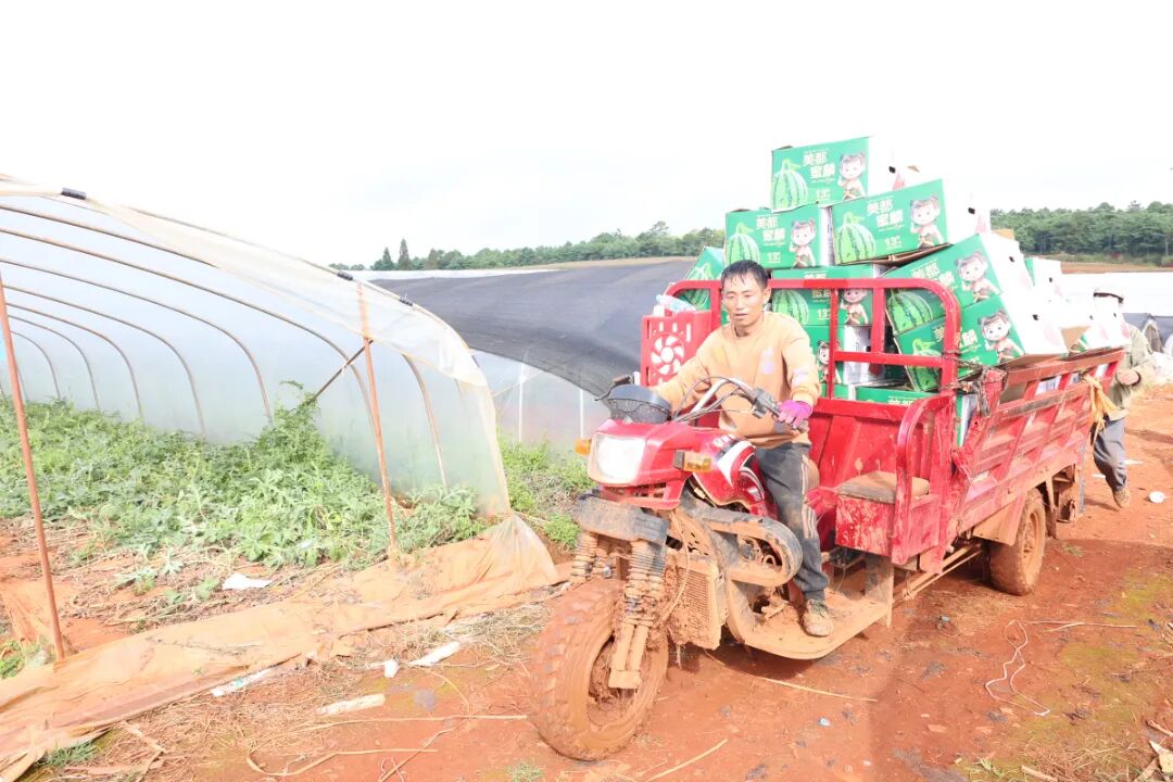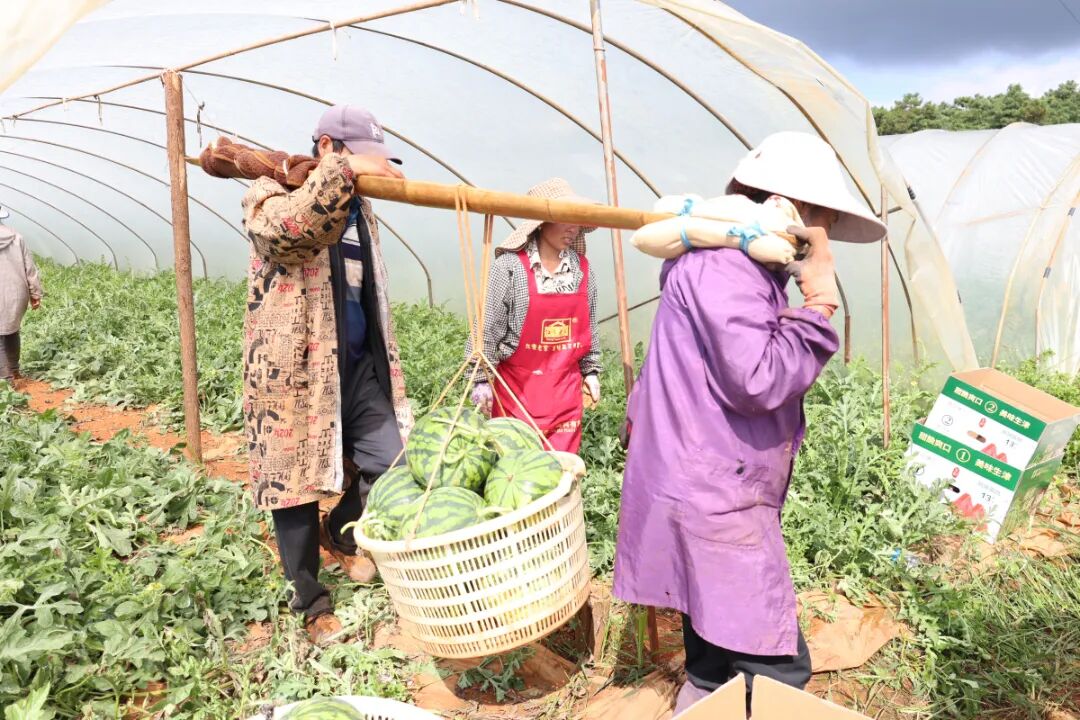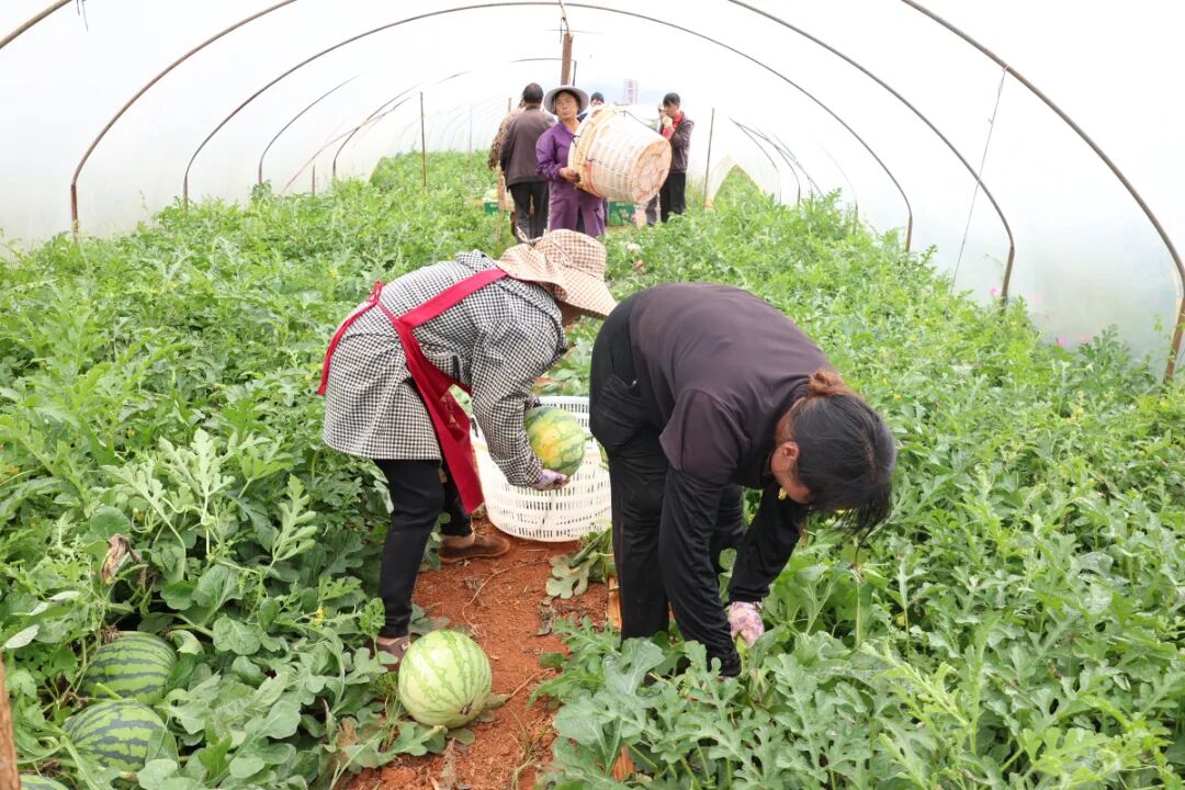 西瓜产业的蓬勃发展,为当地群众带来了多方面的实实在在收益。种植地在种植、管护、采摘、分拣、运输等各个环节,优先吸纳周边村民务工,帮助大家实现“家门口”就业,兼顾家庭与增收。村民尹应茶一边忙着搬运西瓜一边高兴地说:“我家流转了三亩土地给他们,每亩年租金1360元。平时有空就来打工,一天能挣100元左右,比过去自己种地收入更稳定,也更可观。”目前,该产业已带动300余户农户实现增收,为当地群众提供100余个长期务工岗位,其中包括14户脱贫群众,户均增收超8000元,真正实现了产业增效、群众增收的双赢目标。