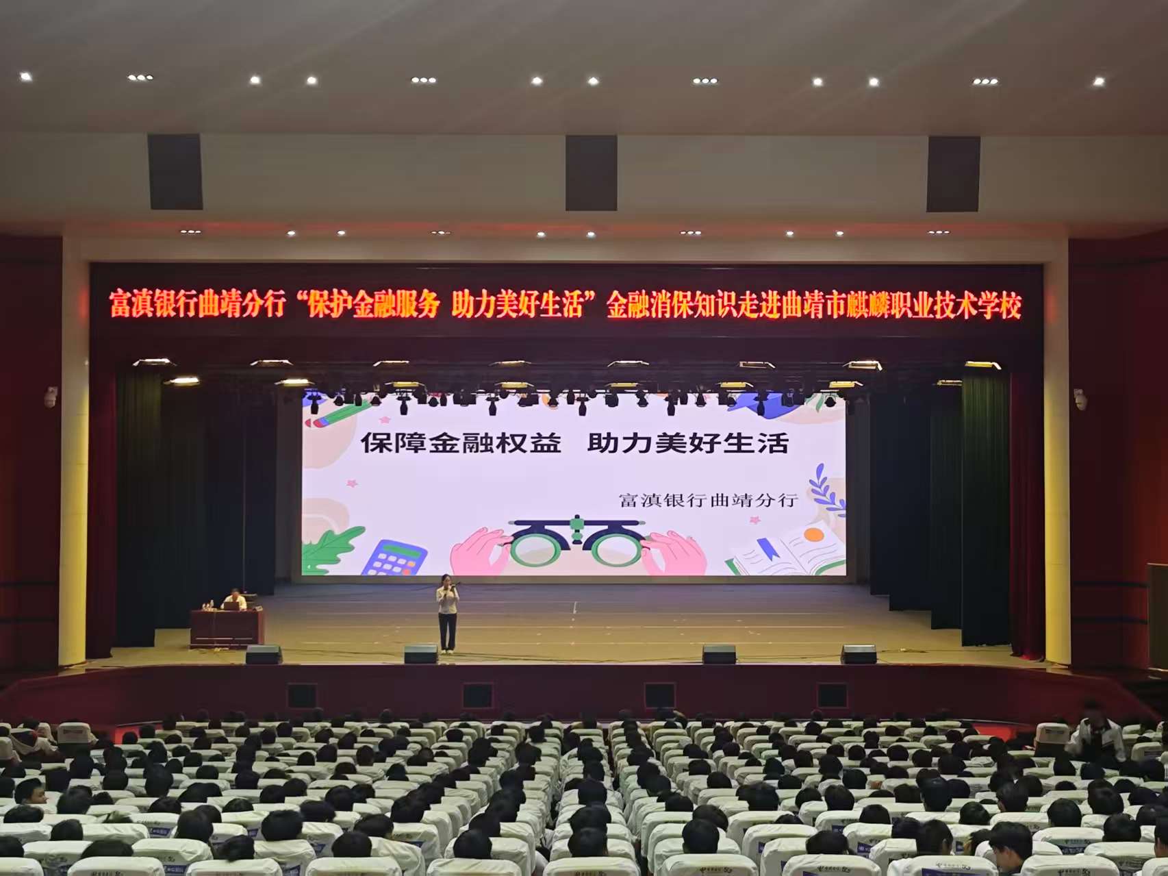 为提升在校学生的金融素养,增强风险防范意识,2025年9月28日,富滇银行曲靖分行联合曲靖市麒麟职业技术学校开展了“金融知识进校园”专题宣讲活动。本次活动旨在帮助在校学生树立正确的金融消费观念,掌握基础金融知识。