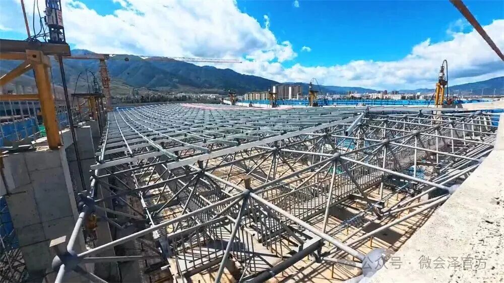 为攻克技术难关,保障提升过程安全精准,项目部采用了先进的液压同步提升技术。通过分布式液压控制系统,在网架上设置8个提升支座,每个支座均配备独立的位移与压力传感器,实时将数据反馈至中央控制系统。系统运用闭环控制算法,自动调节各千斤顶的运作状态,确保所有提升点同步误差严格控制在±2毫米以内,有效防止了网架结构因受力不均可能导致的变形。