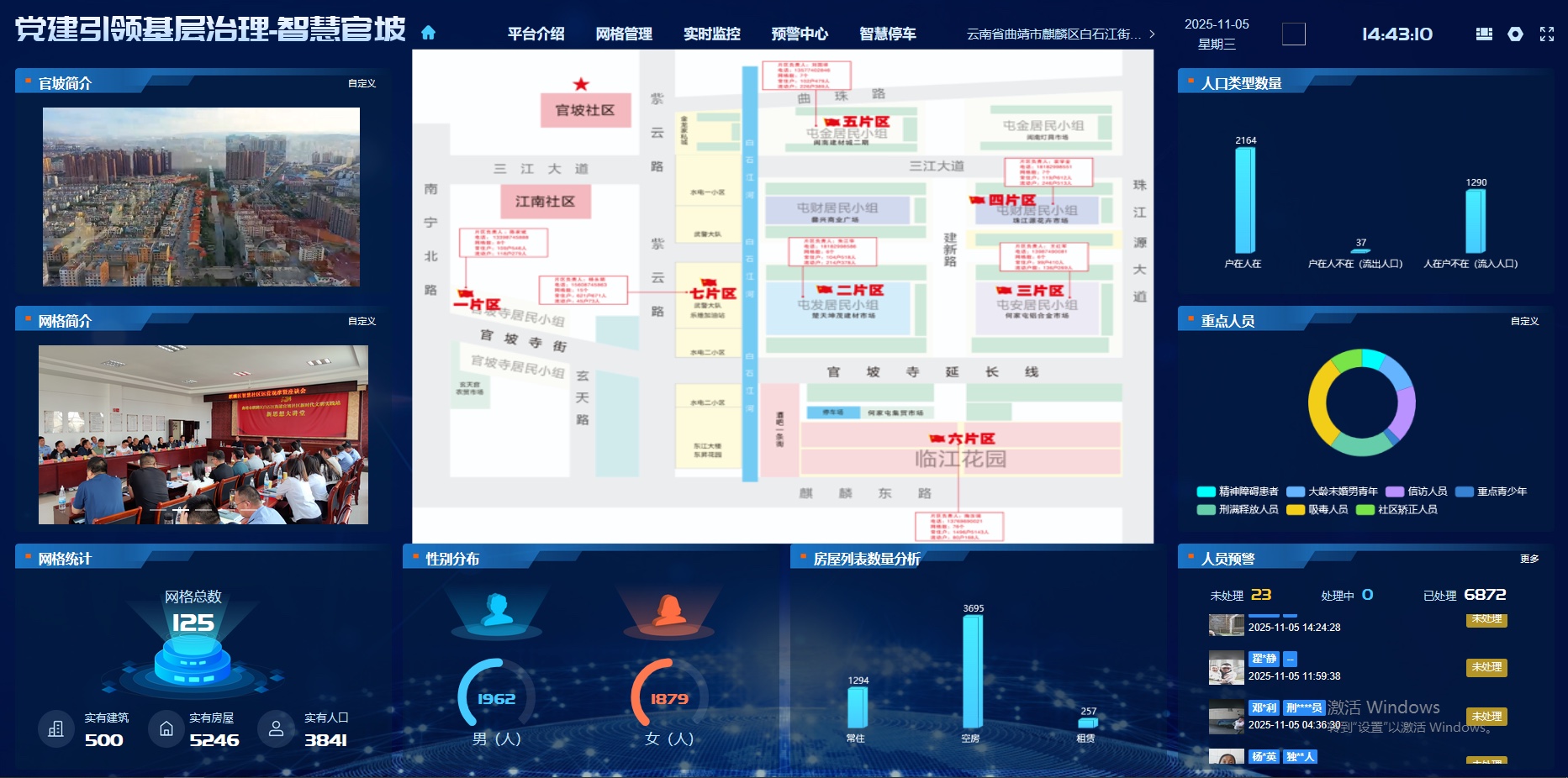 依托“智慧官坡”平台,社区构建了“1网+7片+125格”网格化治理架构,整合辖区市场、企业等党建资源,推行党员“包片联户”。在特殊群体关爱方面,系统会对48小时未出门的独居老人自动预警,网格员及时上门查看;对外出务工返乡人员,网格员主动上门了解情况,有效预防家庭矛盾纠纷。