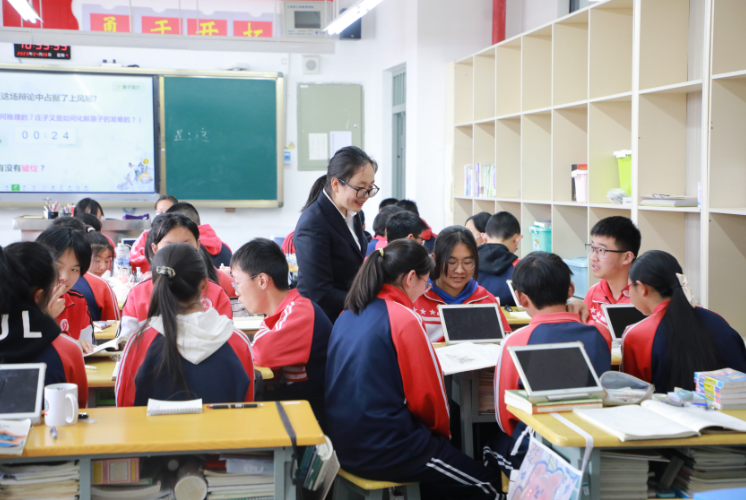 学校创新组织设置,推行“党支部建在年级上、党小组设在教研组”,168名党员教师如红色细胞般融入107个教学班,实现党组织全覆盖。在此基础上,实施“实体化管理、挂钩负责制”,推动管理重心下移。校级领导直接挂钩年级、学科和班级,从“指挥员”变身为“服务员”和“同行者”。学校党委书记吕选波身兼挂钩班级的班主任与数学教师,以“伴读”姿态全程陪伴;校长邓良俊挂钩两个毕业班,每周深入课堂听课、与学生谈心。