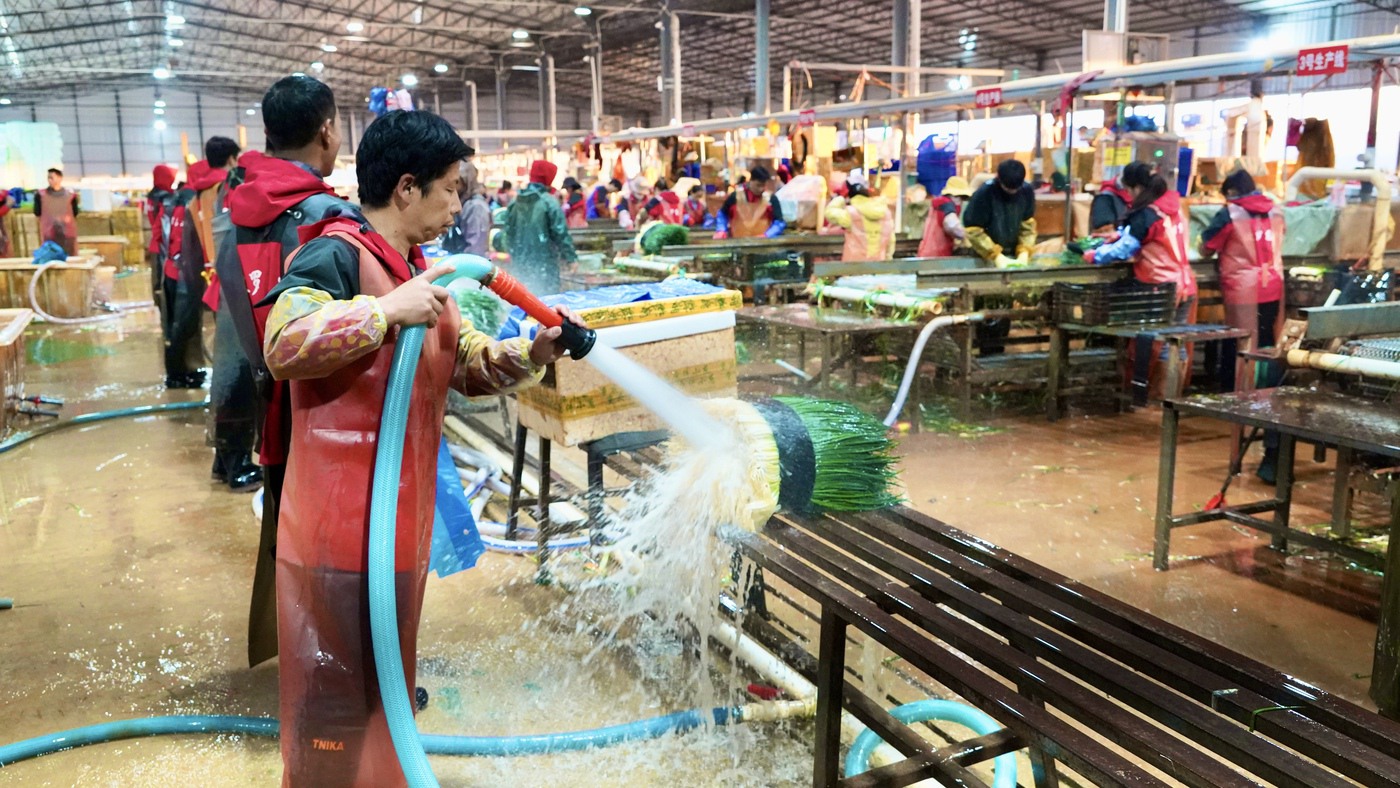 忙碌与收获凝聚在一条条传送带上。明天,又一批香葱将被采收、清洗、装车,发往各地市场。这条持续运转的产业链,带动着当地经济和群众持续地发展增收。