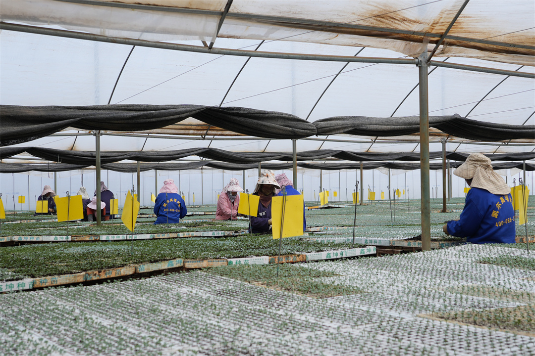 走进陆良县鑫坤农业科技有限公司的育苗大棚,只见清晨的阳光洒满田垄,数十名周边村寨的村民正忙着给小菜定苗、间苗,灵活的按天计酬模式,让农村富余劳动力实现挣钱顾家“两不误”。这样的就业场景,源于企业对产业链的深耕——作为当地蔬菜产业的代表性经营主体,陆良县鑫坤农业科技有限公司构建起从种苗培育、种子销售到蔬菜种植、收购储运、市场销售的一体化模式,公司负责人李从弟说:“我们公司每年育苗1亿株左右,3000亩田地每年产菜3万吨,每天用工量达500人次,工人工资平均在120元一天。”陆良县农业农村局党组成员钱正富表示:“陆良县依托92万亩蔬菜主导产业,培育发展1905个蔬菜生产经营主体,建成西南地区最大的蔬菜冷链物流园,蔬菜全产业链从业人员21万人,户均增收2.8万元以上,2025年培育‘家门口的务工车间’27个,发放奖补资金31.12万元,实现3881人就近就地就业,牢牢守住了不发生规模性返贫致贫的底线。”既靠全链条发展撑起用工需求,更以稳定岗位让周边村民就近就业,成为曲靖产业联农带农的典型范例。
