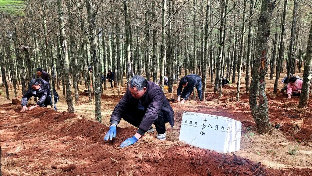 位于务德镇茨嘎村的曲靖天桓农业技术开发有限公司天麻种植基地里,村民黄吉川正在栽种天麻。2026年10月左右,这些天麻就可以收获了。天麻种植基地的建成,不仅盘活了林地资源,更为当地群众提供了“家门口”的就业机会。