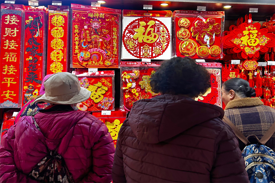 走进商超,春联、灯笼等年货琳琅满目,这些年货不仅能为节日增添喜庆氛围,还能让市民感受传统文化的魅力。“春节是我们的传统节日,我们家非常重视,每年都会提前一个月备年货,春联、‘福’字是必选品。”前来选购春联的李阿姨笑着说。