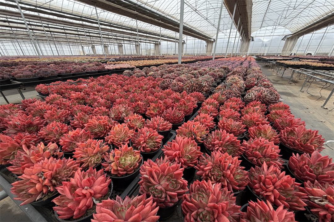 云南世美花卉有限公司员工尹彩丽表示,基地的多肉凭借品类多、颜值高、价格亲民的优势圈粉无数,“每天订单都爆满,我们加派了好多人手备货,就等着迎接销售高峰!”