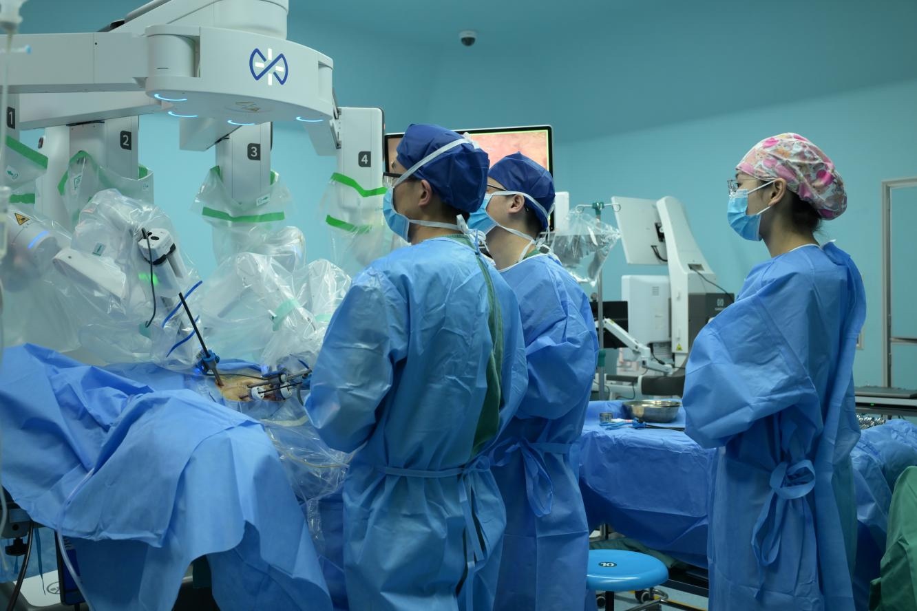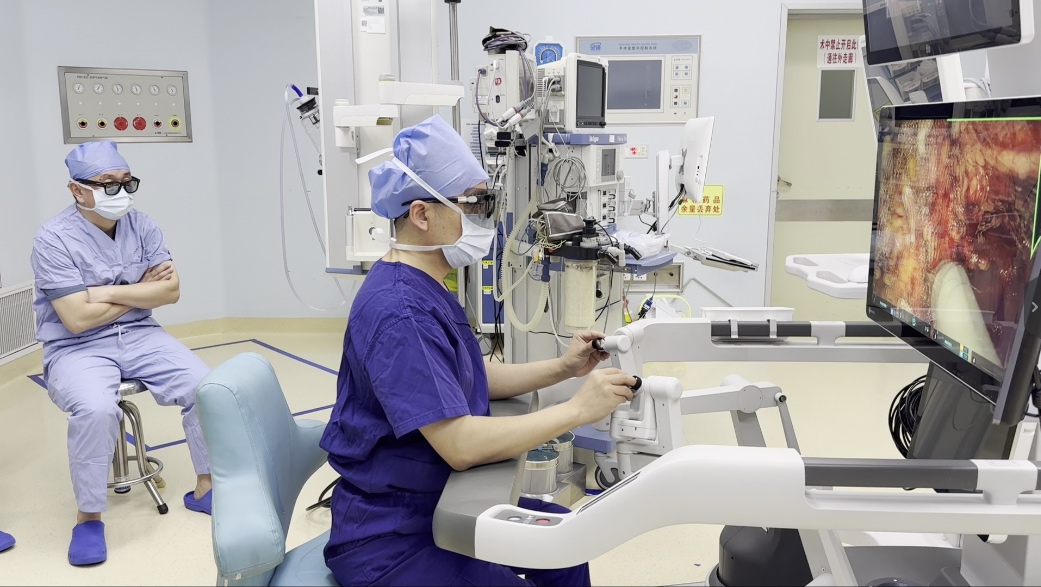 远程手术的成功离不开科技的有力支撑。本次手术采用的国产手术机器人,配备10倍放大的3D高清视觉系统,可清晰呈现毫米级解剖细节,满足了手术自上腹部至盆腔的大范围操作需求,保障了复杂区域精细解剖的安全。其7个自由度的机械臂可滤除人手自然颤动,实现超乎人手极限的稳定与精准,特别适用于盆腔等复杂部位的手术操作。