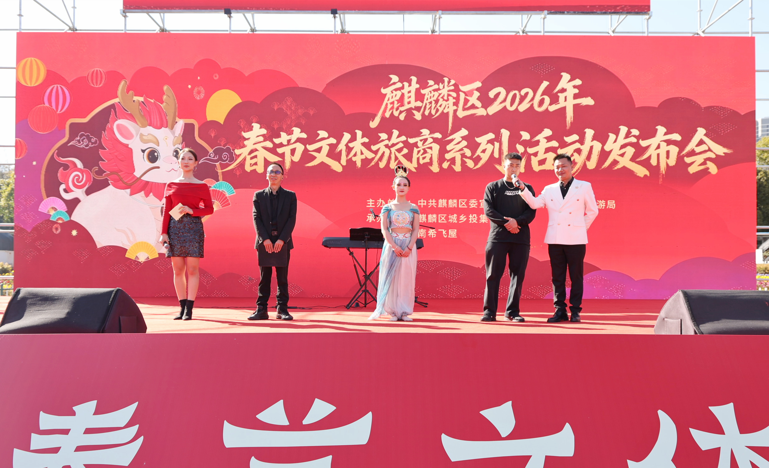 1月28日,麒麟区2026年春节文体旅商系列活动发布会在珠江源广场热闹启动。会上,令人期待的麒麟文化IP——“爨灵麟”正式亮相,为即将到来的新春佳节注入了满满的文化韵味与活力。