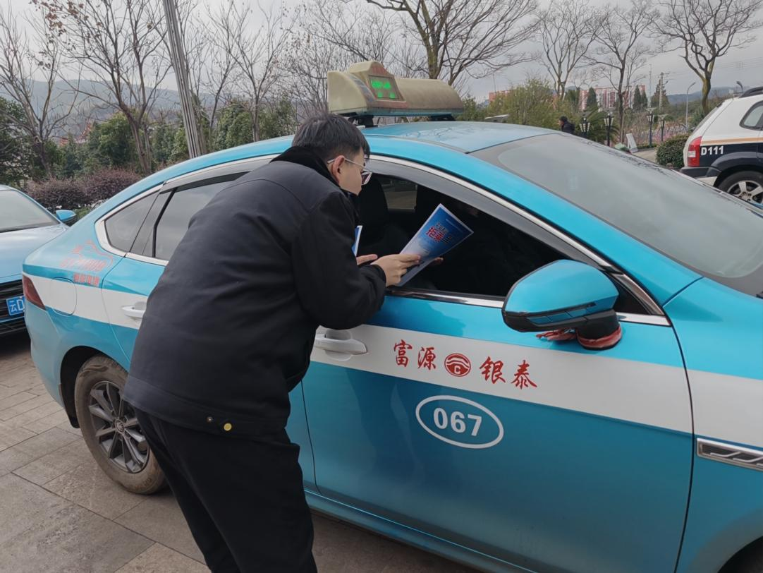 富源大队积极拓展宣传阵地,广泛动员辖区出租车公司、城乡客运企业驾驶员作为“义务普法宣传员”,在数百辆合法营运车辆的醒目位置放置宣传资料,利用车载设备滚动播放安全提示,将普法宣传融入群众出行全过程。借助营运车辆流动性强、覆盖面广的优势,逐步构建移动法治宣传网络,辐射群众超千人。