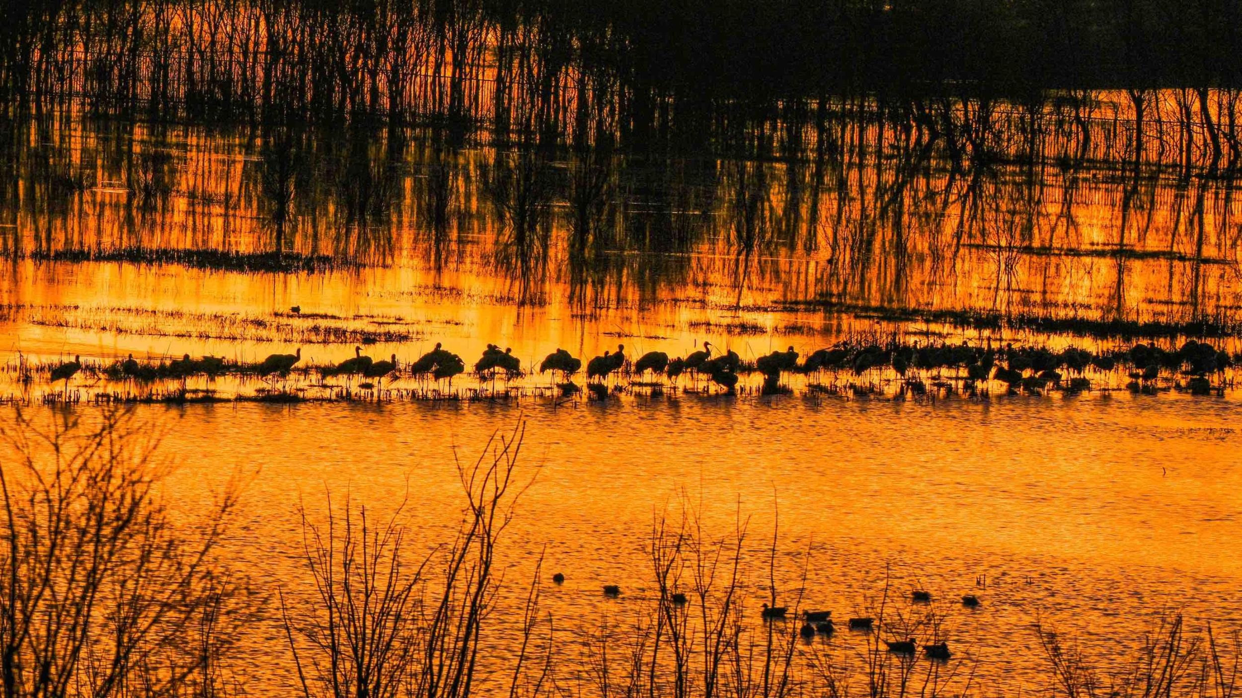在鹤群迁徙的漫漫征途中,它们会随气流变化不断调整队形。领头鹤多为群中年富力强、体格健硕的个体,它披荆斩棘、迎风展翅,以丰满的羽翼扇动气流为同伴开辟航路;“年轻力壮者”紧随其后,幼鹤与“体弱者”则依托前排鹤群扇动的气流顺势滑翔,大幅减少体力消耗。正是这样一支齐心协力的团队,在领头鹤的引领下,穿云破雾、跨越山海,来到我们身边。(徐汝枞)
