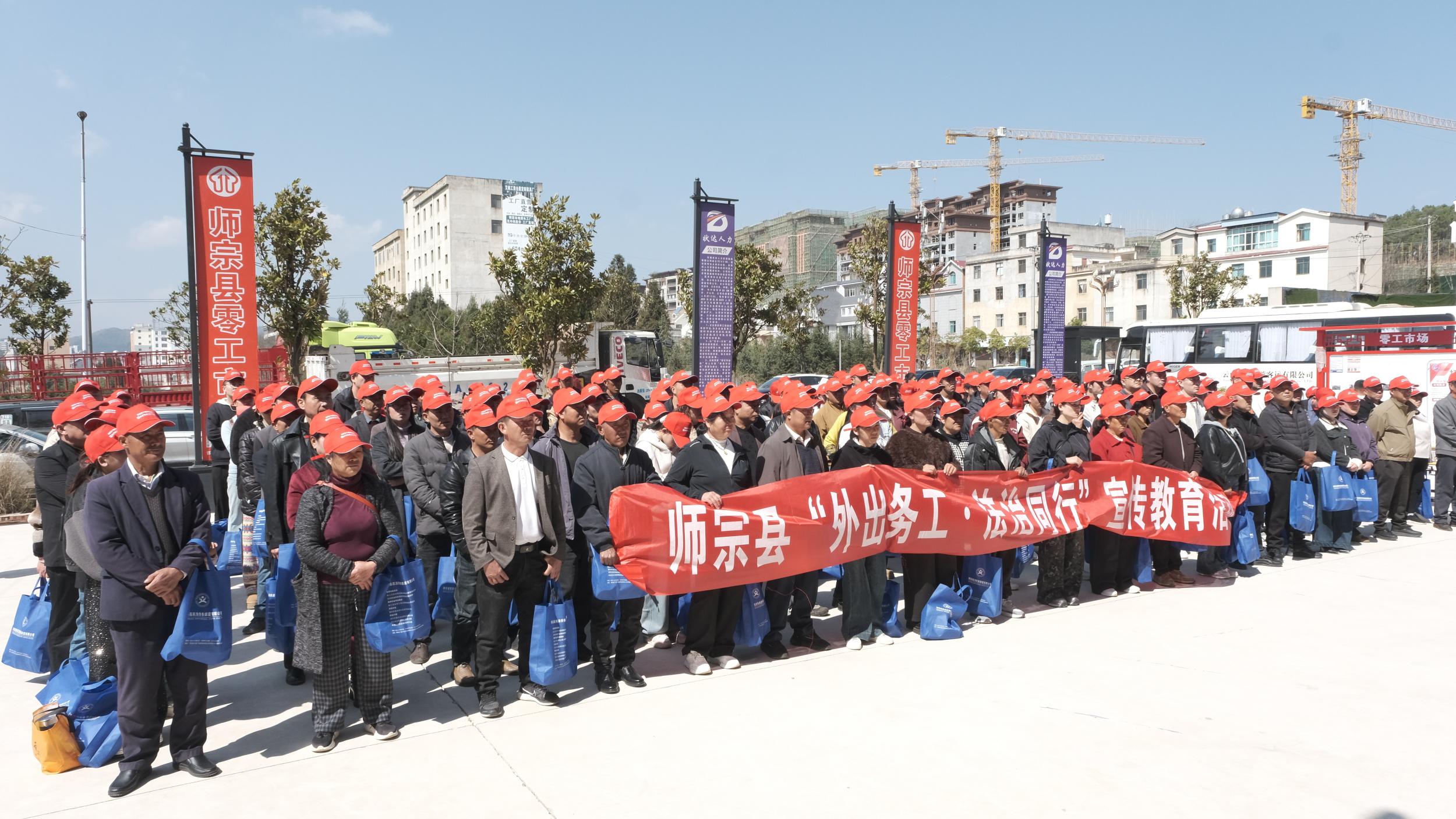 活动现场气氛热烈,务工人员精神抖擞、整装待发。大家共同观看《外出务工·法治同行》宣传片,学习权益保障、交通安全、反诈防骗等知识,为平安务工筑牢思想防线。相关职能部门工作人员叮嘱大家遵纪守法、爱岗敬业,传承师宗人民勤劳朴实的优良品质,鼓励大家以实干创造幸福、以奋斗增收致富。