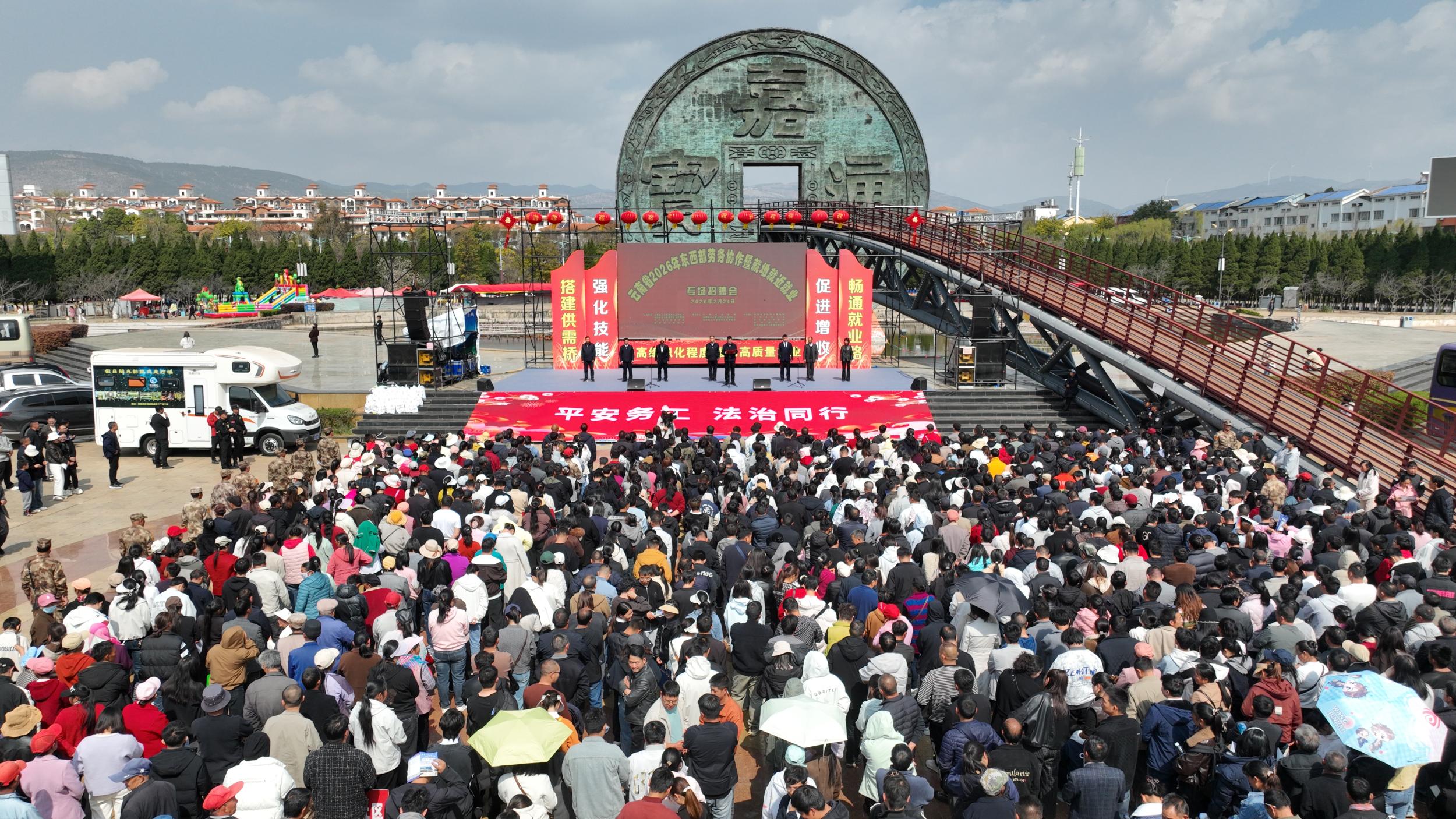 春早人勤,万象更新。2月24日,云南省2026年东西部劳务协作暨就近就地就业专场招聘会在会泽公园隆重举行。本次招聘会精准搭建企业与求职者对接桥梁,50多家企业携8000多个优质就业岗位倾情入驻,吸引2500余名农村劳动力、返乡未就业大学生等群体到场求职,切实破解群众“务工远、顾家难”的急难愁盼,注入强劲就业动能。