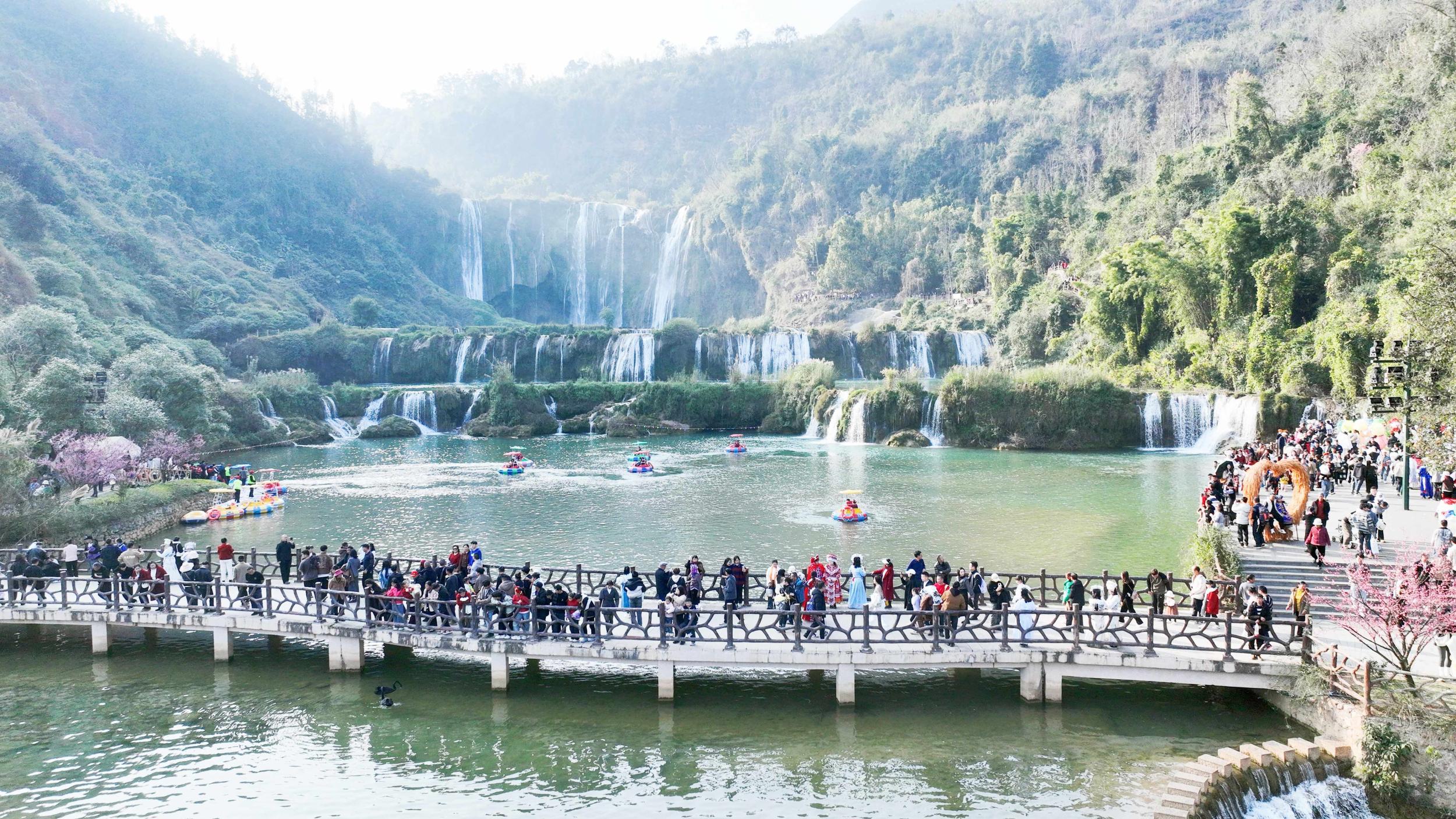 春节长假期间,云南省曲靖市罗平县九龙瀑布景区人气爆棚,八方游客踏春而来,带动周边群众增收,绘就一幅农文旅融合发展画卷。