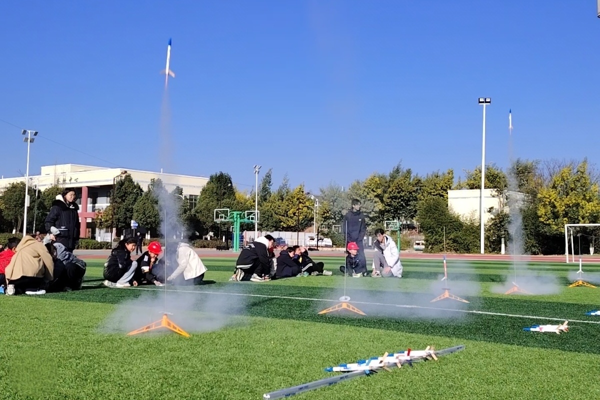 在火箭发射实践课程中,孩子们在专业老师的指导下化身“小航天工程师”,细致调试自制模型火箭。随着倒计时结束,一枚枚承载梦想的火箭升空,尾焰划破晴空,现场掌声雷动。孩子们亲身经历完整的航天实践过程,真切体会航天事业的严谨与浪漫。