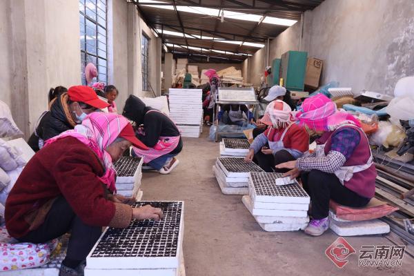 走进宝云街道扯戛社区的烤烟漂浮育苗点,十几个工人正在忙着育苗,有的铺设基质肥料、有的用播种机播种、有的置放漂盘,各司其职,有条不紊。“在装基质肥料的时候要注意让基质保持适当的蓬松度,太硬了烟苗不易出土,太松了烟苗出土后不易生根,还要把成坨的基质碾细,深浅也要均匀,这样才能保障烟苗的出苗率和壮苗率。”金钟烟叶站站长金华一边查看每个环节,一边指导工人播种要领。