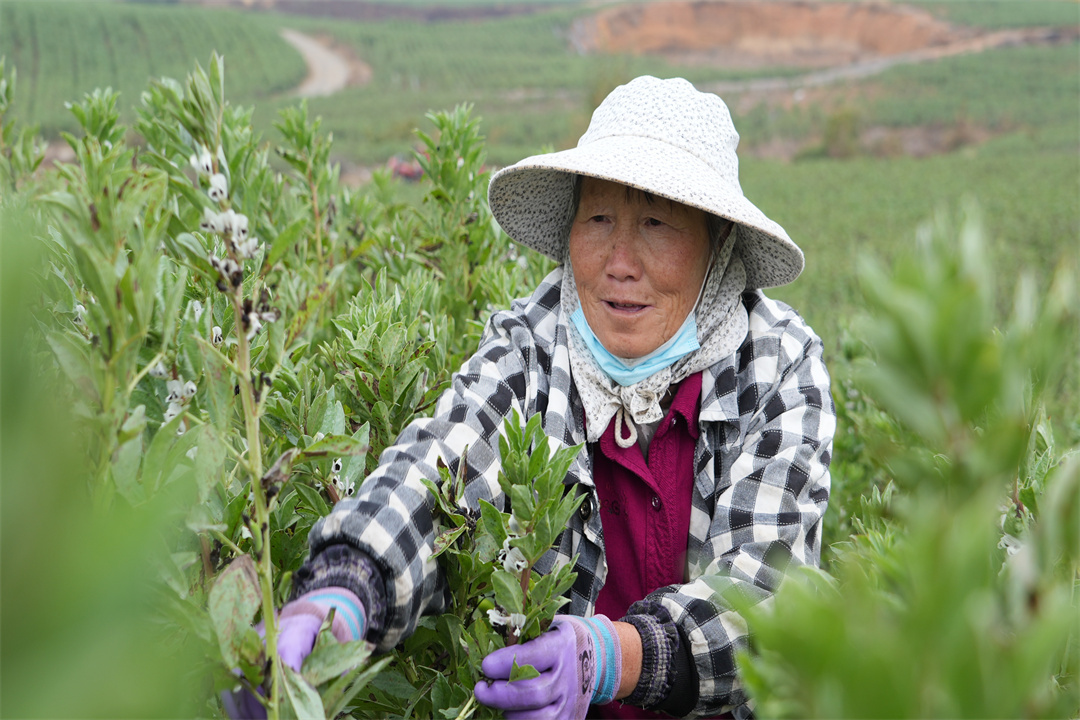 冬日,正值鲜食早秋蚕豆采摘上市旺季,云南省曲靖市陆良县马街镇薛官堡社区的田间地头一派繁忙景象。