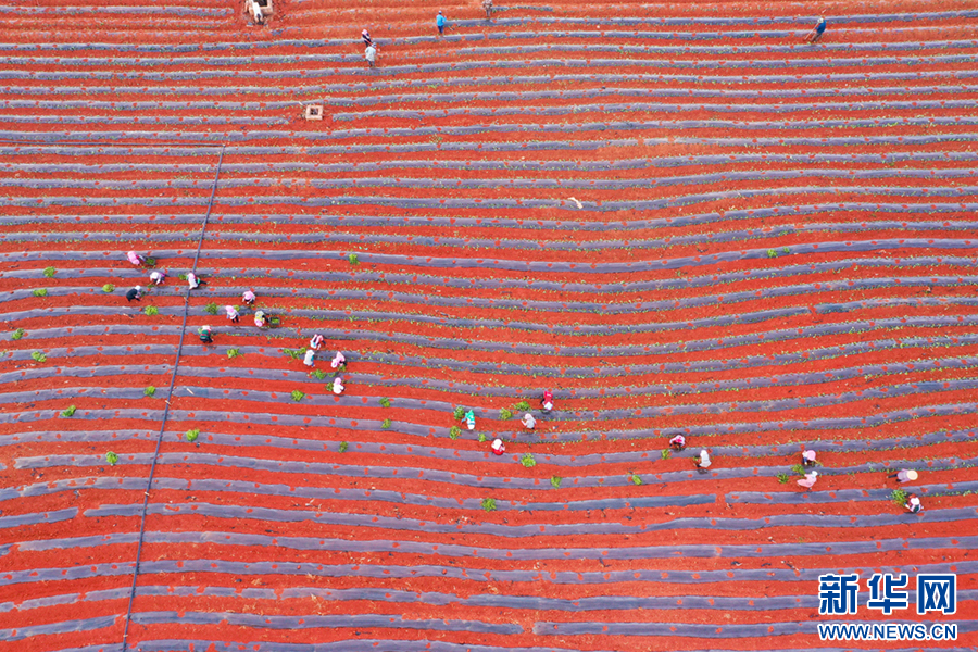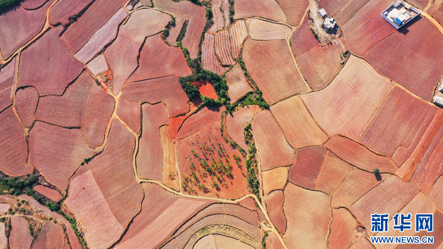 近日,俯瞰云南省曲靖市沾益区盘江镇的广袤田野,被翻种的土地色彩斑斓,村民在地里辛勤劳作,美不胜收。近年来,盘江镇大力发展农民专业合作社,村民积极参与土地流转,有效盘活撂荒、闲置土地。