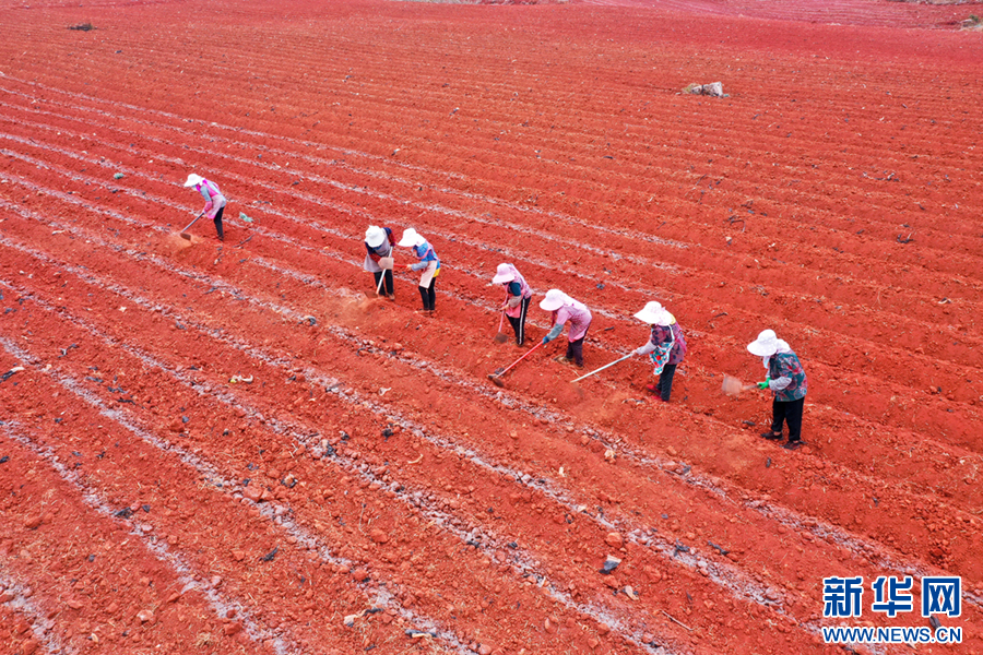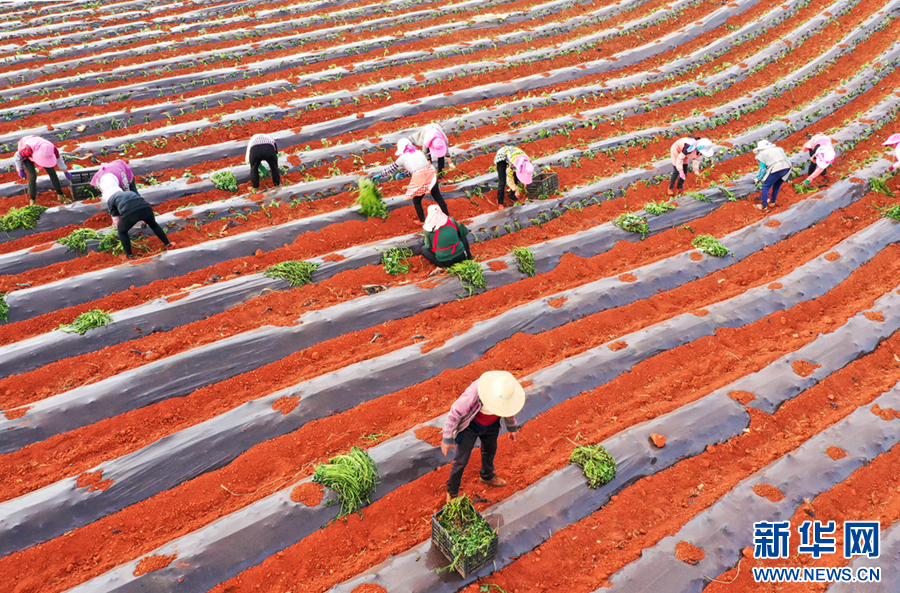 在云南省曲靖市沾益区盘江镇,村民正在地里劳作(5月29日摄)。新华网发(孙文来 摄)