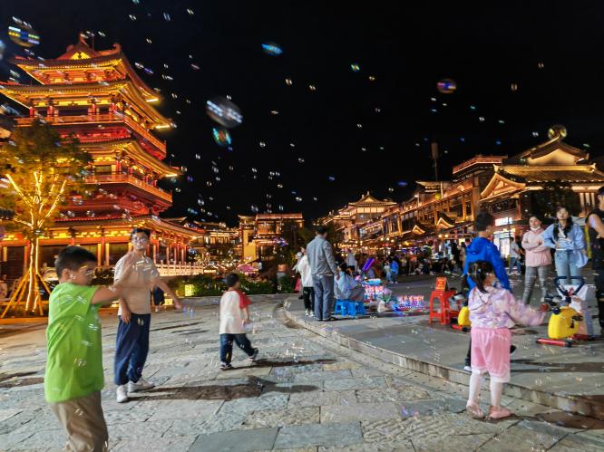 数据生动印证了“夜色”带来的经济活力:2025年6月,全市夜间消费规模已占全天消费总额的46.18%;“五一”假期期间,这一占比进一步提升至55.6%。消费结构也从早期的餐饮为主,逐步向夜娱、夜购、夜游、夜宿等多元业态拓展。尤其值得注意的是,异地游客夜间消费占比持续提升,人均消费力显著高于本地居民,显示出曲靖夜经济对外吸引力的增强。
