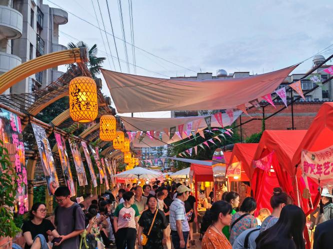 晚上七点,曲靖外滩的民族广场上音乐欢快,身着彝族、苗族等各色服饰的舞蹈队伍成为一道流动的风景线。市民李阿姨说:“晚上来这里逛夜市吃吃美食,看看歌舞表演,真的很惬意。”不远处,长达1500米的步行街上灯火通明,烤串、米线、烧洋芋的香气弥漫。