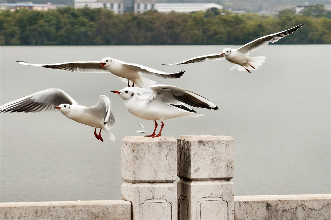 冬日的云南曲靖宣威市,天地人和谐相处,河滨大道、地景公园、小营村银杏林,到处色彩斑斓。最可爱的是金月湖,迎来了不远万里长途跋涉而来的西伯利亚红嘴鸥,它们只为与热情好客的宣威人赶赴一场去年就许下的约定,演绎人鸥和谐的精彩故事,为宣威的这个冬天增添灵动的韵味。(吴小学)