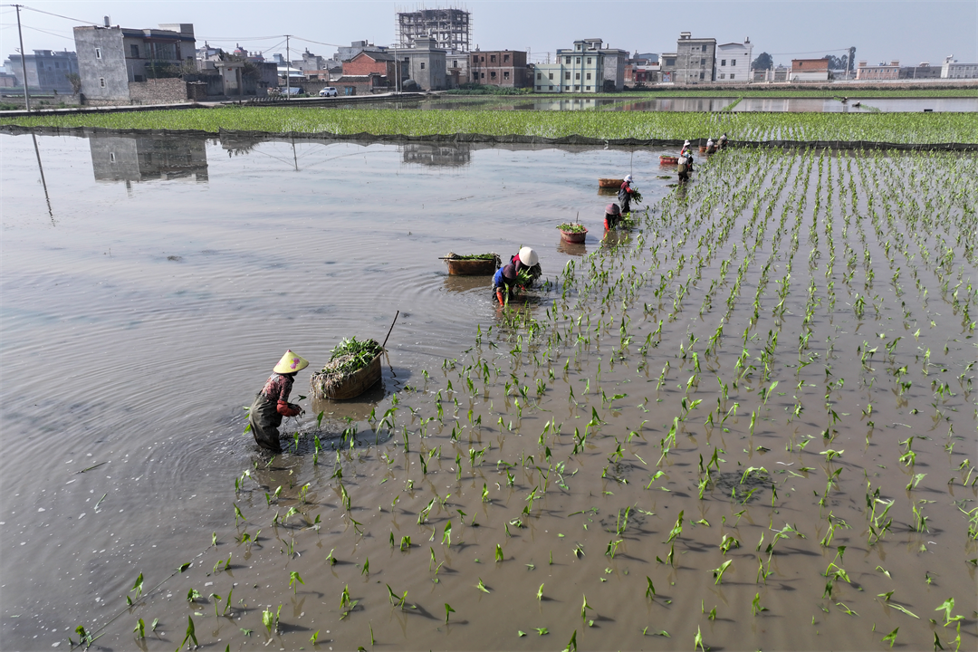 万清社区监委会主任李谷然说:“万清社区今年种植茨菇300亩,将进一步壮大集体经济、带动群众增收。同时,依托丰富的水资源,社区积极发动种植大户扩大茭白、莲藕等水生蔬菜的种植面积,全力推动水生蔬菜实现种植规模化、管理机械化、产品商品化。”