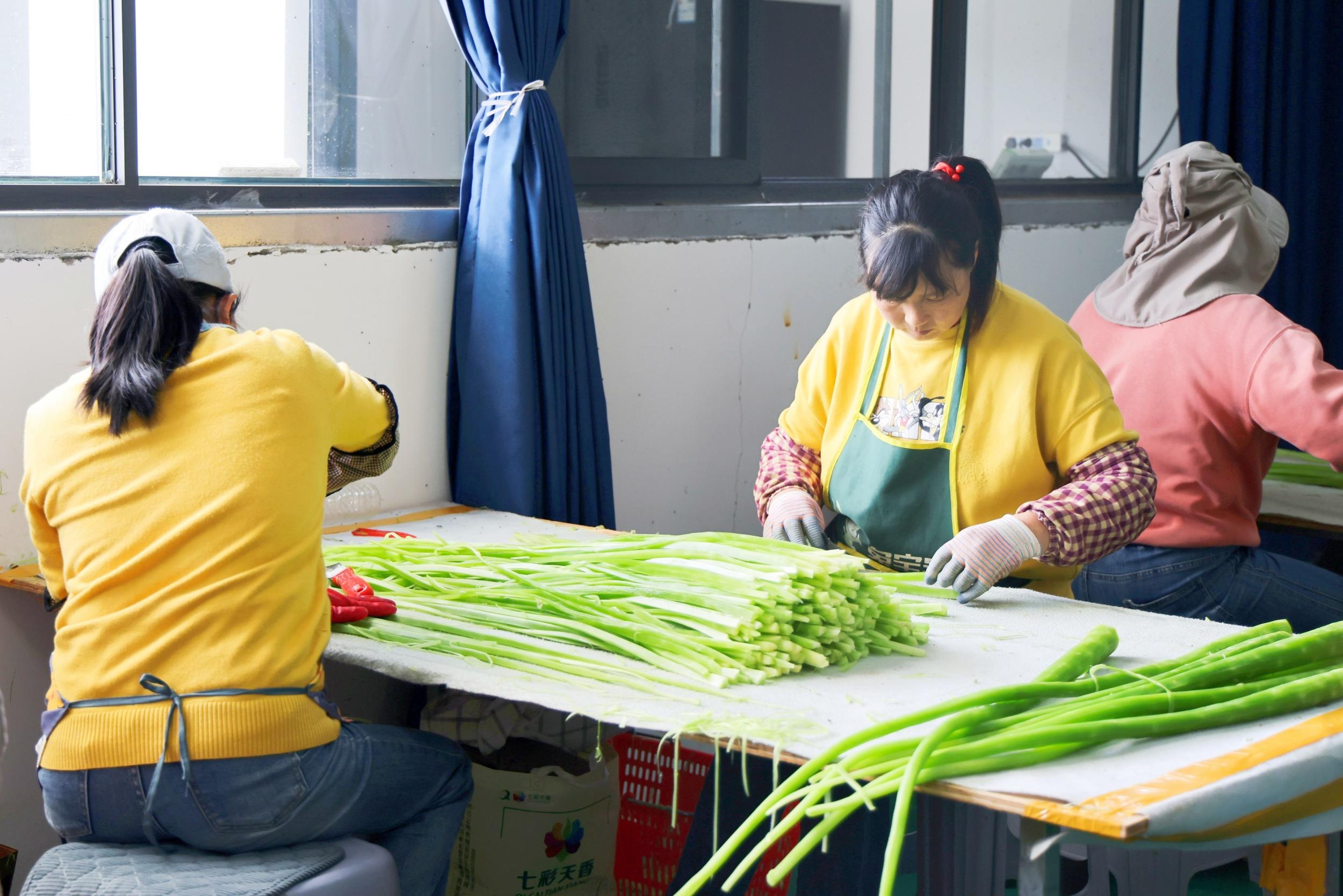 在罗平亨丰农业有限责任公司的加工厂里,工人们正动作熟练地对刚采收的贡菜进行脱叶、去皮、划条、晾晒。“我们公司生产的贡菜产品在市场上很受欢迎,主要销往四川、安徽、江西等地,出口韩国、日本、泰国等国家,销量相当可观。”郭依冉说。