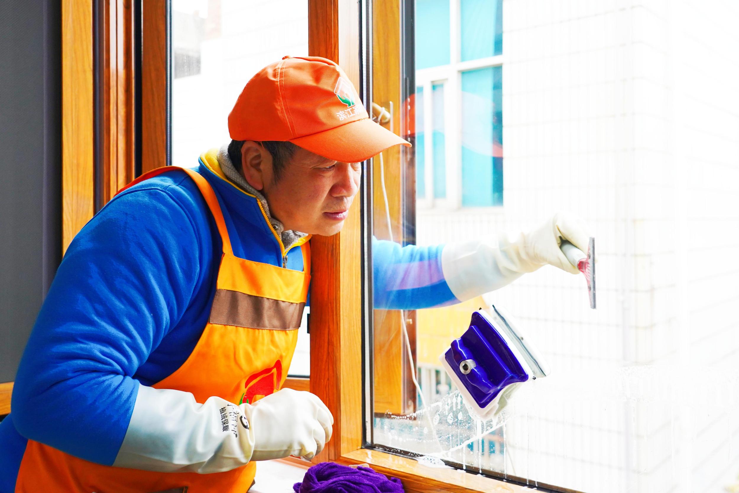 天刚蒙蒙亮,家政服务队便集结完毕,前往一个小区开展家政服务。“今天我们要为一栋三层楼房进行保洁。”家政服务队队员杨建华说。